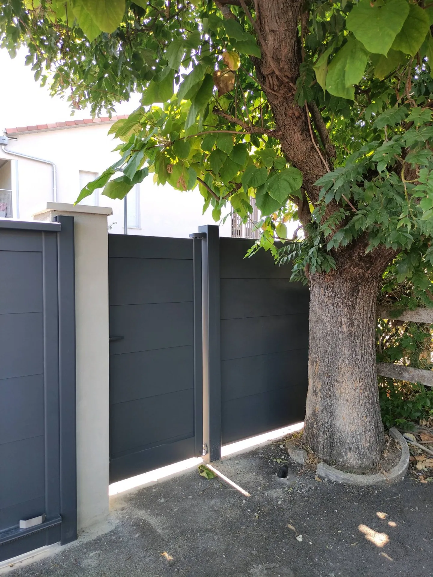 L'installation de ce portail, portillon et la clôture assortie a permis de sécuriser cette maison et de lui apporter une belle plus-value esthétique.