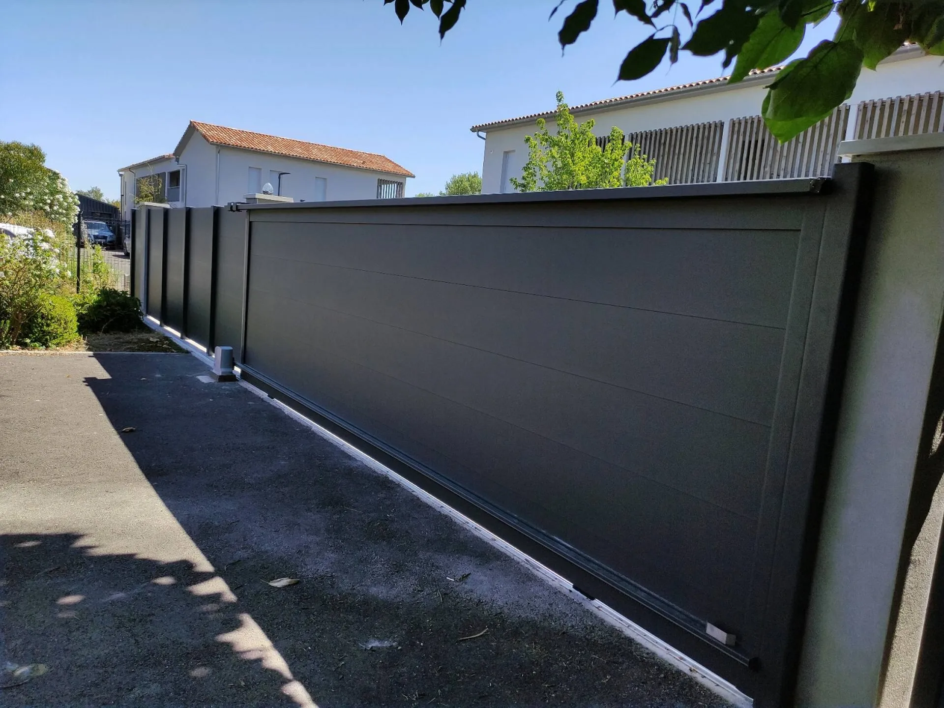 Découvrez ici, notre chantier situé à Launaguet (31) pour l'installation à neuf d'un portail motorisé coulissant aluminium, d'un portillon aluminium et d'une clôture aluminium assortie.